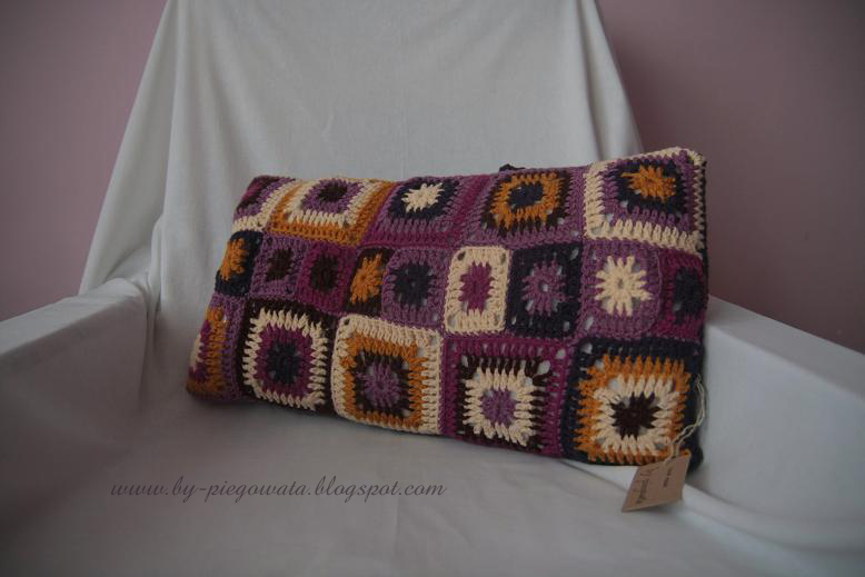 Na pierwszy ogień poszewka, ulubiona za kolory i rozmiar. Sama poszewka ma rozmiar 30x50, ale najlepiej wygląda na poduszce 40x60. Sploty ładnie się naciągają i całość wygląda estetycznie:) Zapinana na trzy drewniane guziki :)